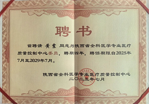 11月8日,陕西省全科医学专业医疗质量控制中心成立大会暨质控工作会议在西安召开。会上,我院综合内科全科医学科主任黄震被聘为省全科医学专业医疗质控中心委员。
