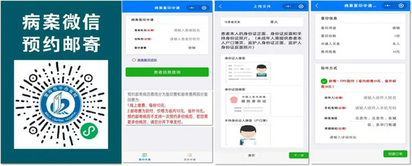 扫码或微信搜索小程序“宝鸡市中心医院病案邮寄”,按照流程提示进行预约操作,审核通过后,在家等待病案邮寄上门。